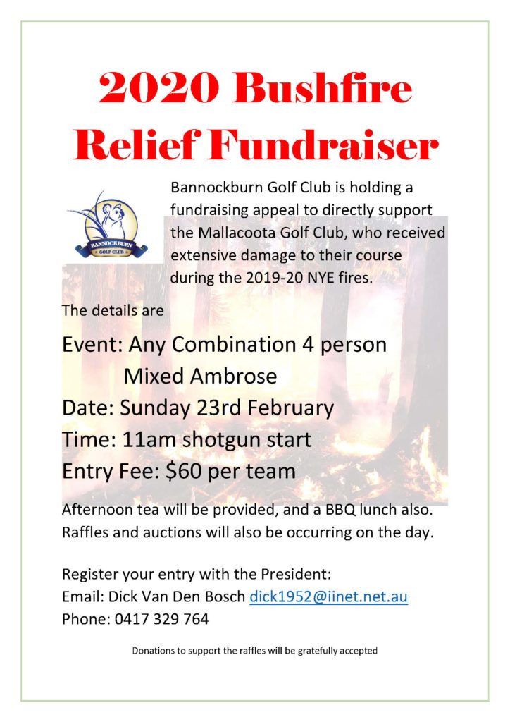 Thank you to the Clubs and Individuals who reached out and held fundraisers, donated money and provided reciprocal playing rights for members of the Mallacoota Golf and Country Club. Fundraising activities have been amazing and will greatly assist the club in the recovery process.